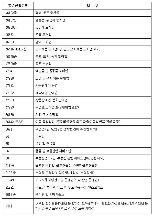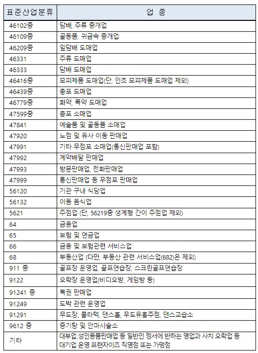 2023 영동군 소상공인 점포개선사업 지원 제외 업종