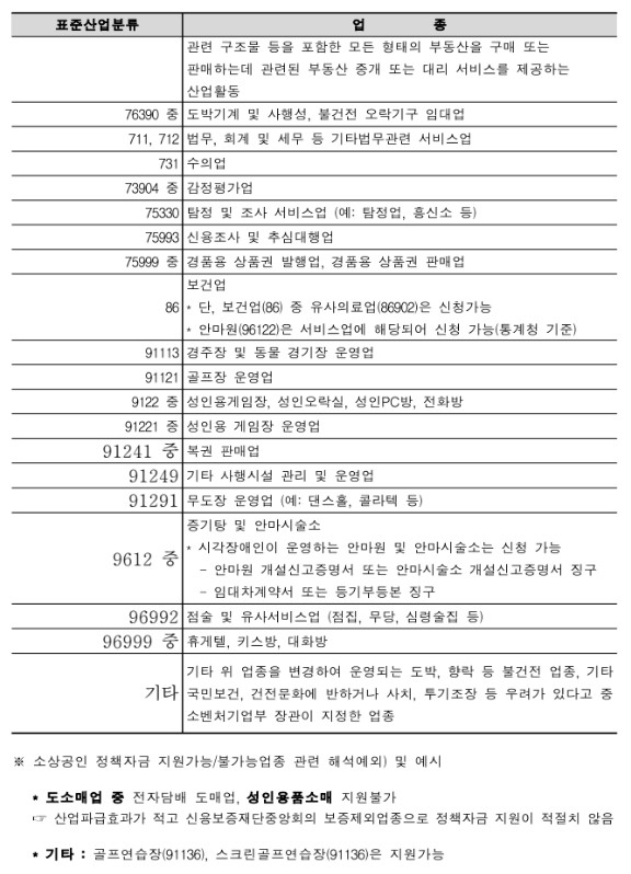 2023 충청북도 소상공인 점포개선사업 지원 제외 업종